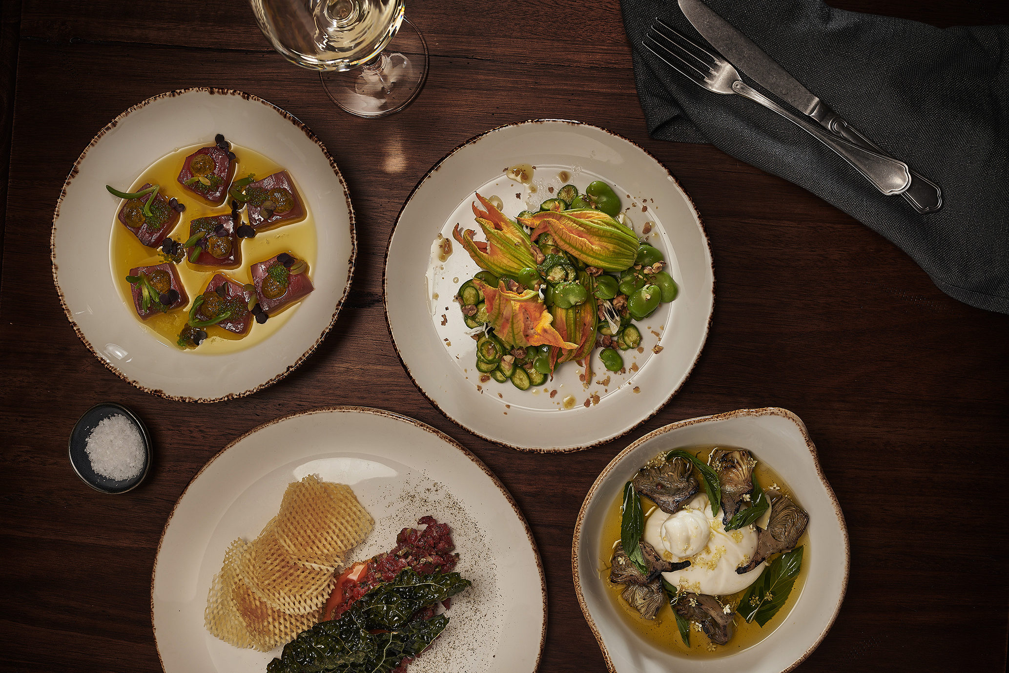 Yellowfin tuna crudo, chermoula, tobiko, olive oil (gf/df)